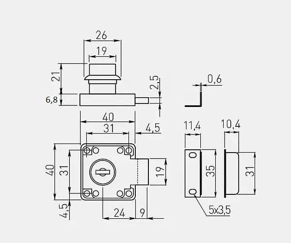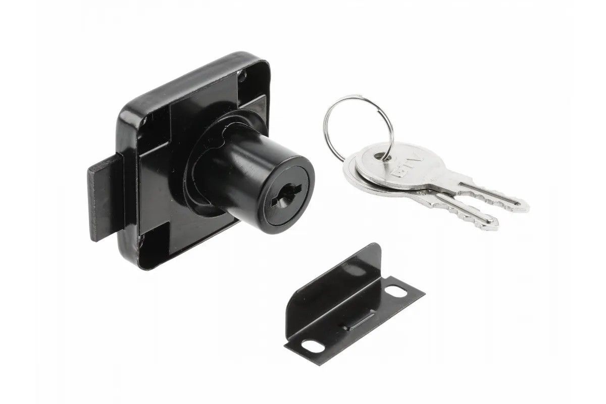 Замок мебельный №138 с планкой, простой (металлический) ключ, черный - устройство, служащее для запирания дверей и ящиков мебельных изделий. Фиксация в закрытом состоянии осуществляется посредством поворота ключа. КОМПЛЕКТАЦИЯ Замок – 1 шт. Ответная планка – 1 шт. Ключ – 2 шт. ВАЖНОЕ ДОПОЛНЕНИЕ Для установки замка необходимо дополнительно приобрести крепеж – шурупы.
